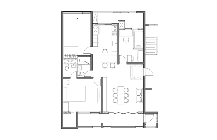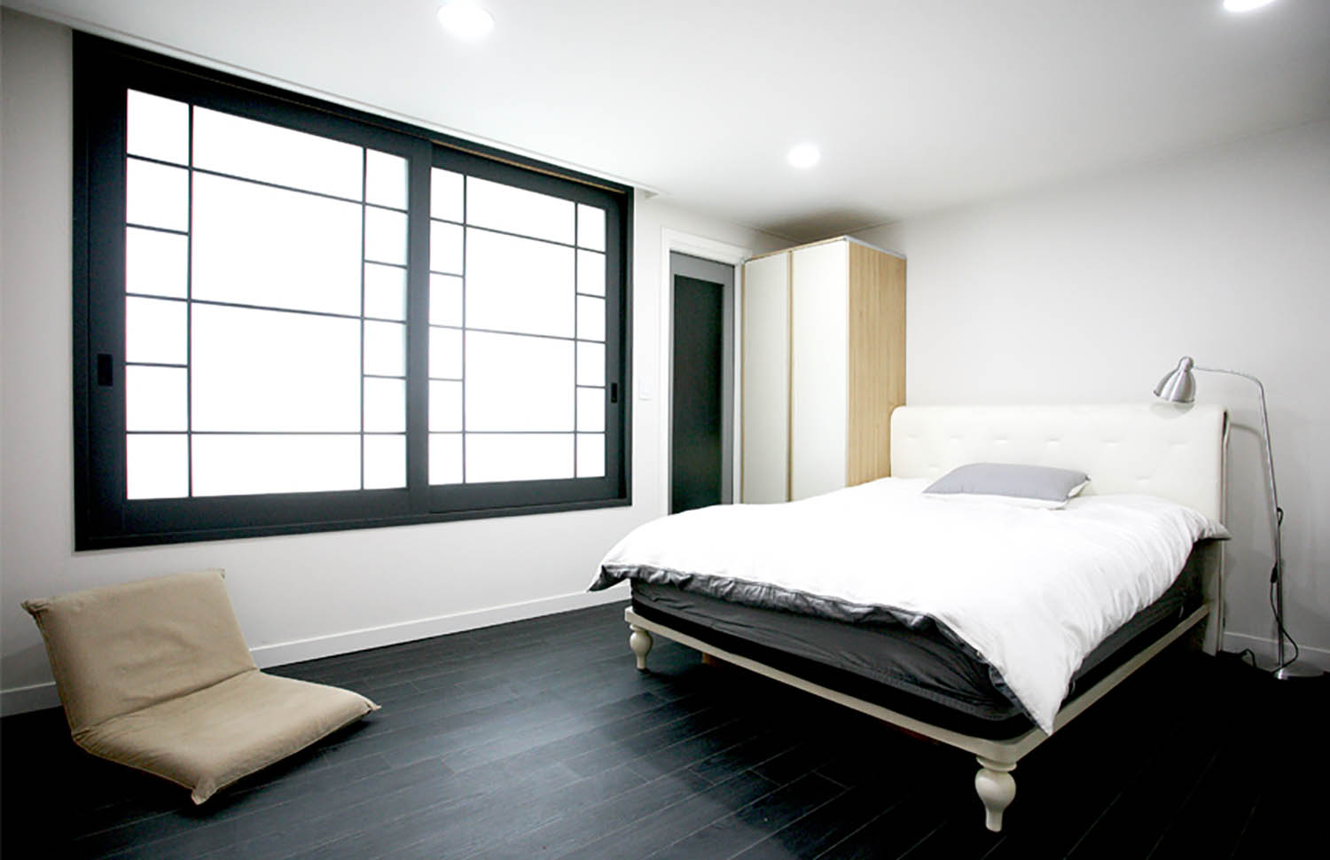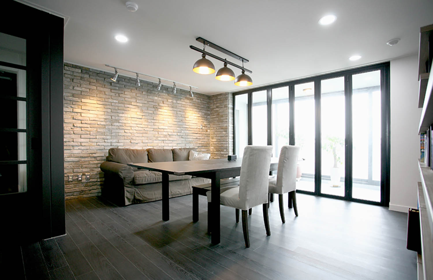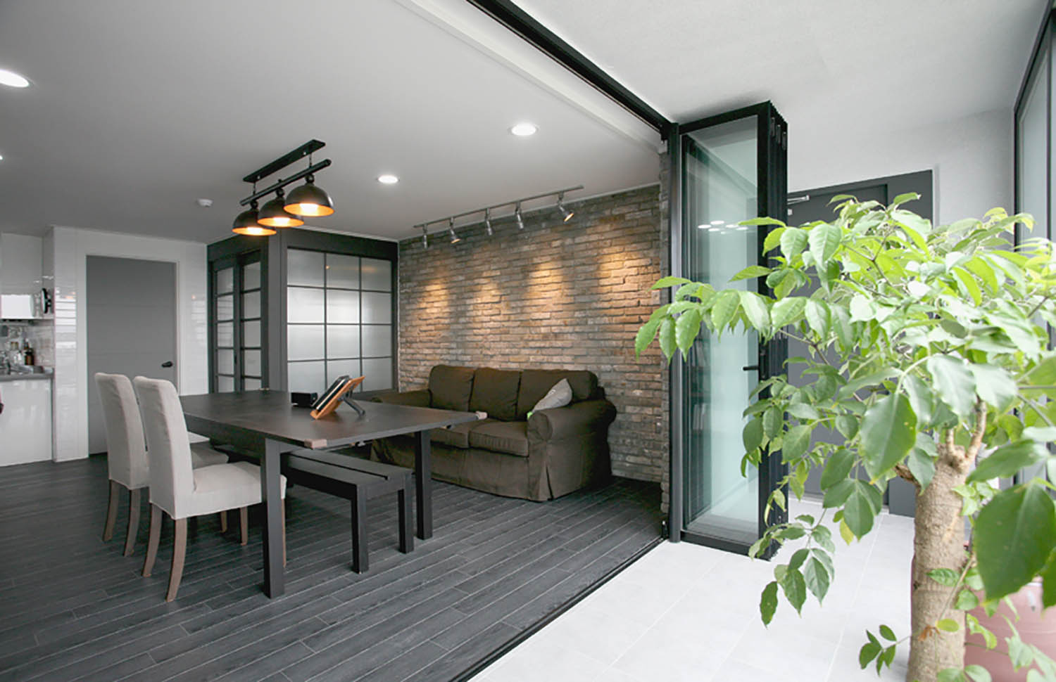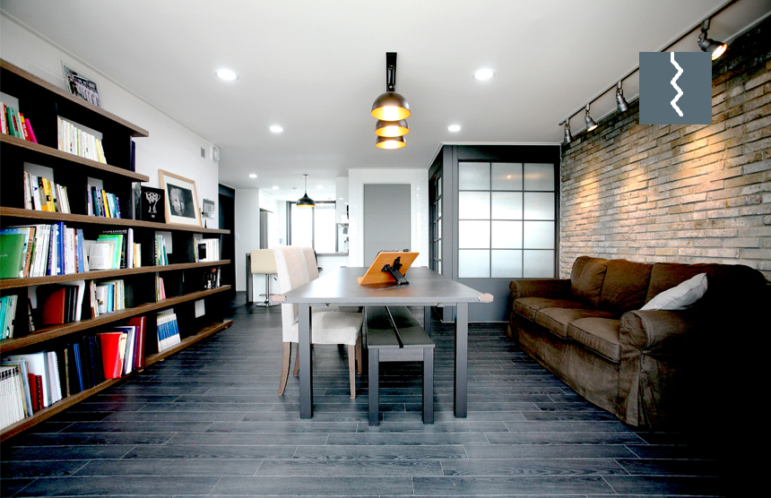 “거실에 TV를 없애주세요. 카페 같은 집이었으면 좋겠어요.” 처음 우리를 찾아온 건축주는 유니크한 삶을 원했다. 아들, 딸, 그리고 엄마, 세 식구가 살 이 집에는 거실 테이블 대신에 스터디 테이블을 놓고 TVTV 장식장 대신 책장을 놓고 싶어 했다. 우리는 우선 3개의 방을 각각의 집으로 방문을 나서면 만나는 거실 주방 등을 마당으로 정의했다. 그리고 세 사람의 성향의 맞게 테라스가 있는 카페 같은 인테리어를 했다.