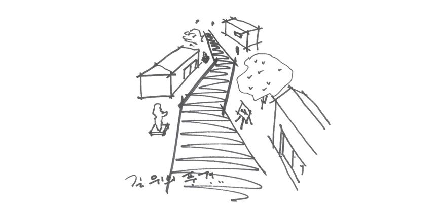 우리가 제안하는 미술관은 대지 주변의 맥락들과 연속되어 흐를 수 있는 미술관이다. 동서통합 남도 순례길의 일부로써 계획한 미술관은 길이 되어 흐르고, 그 위에 미술과 사람의 풍경이 조화롭게 펼쳐진다. 폐선 부지의 흔적을 담은 길 위의 풍경은 새것과 옛 것이 조화되어 하나의 랜드마크로 탄생한다.