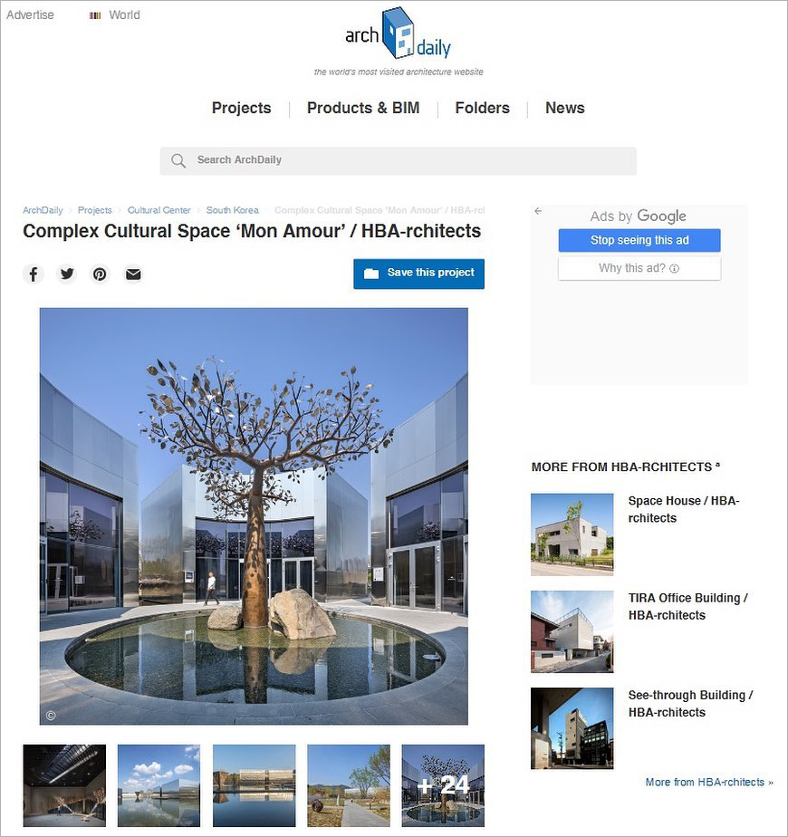 HB건축에서 설계, 감리한 복합문화공간 '모나무르'가 세계적인 건축웹진 Archidaily 에 소개되었습니다. ^^
