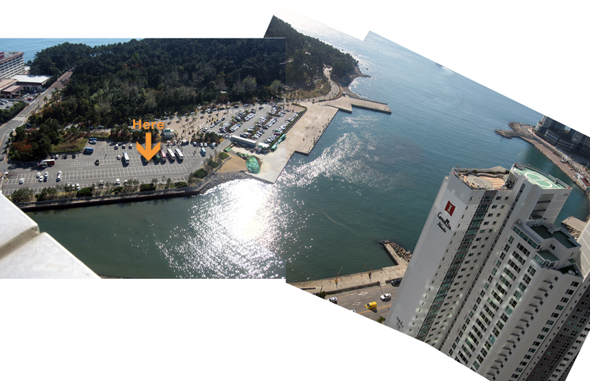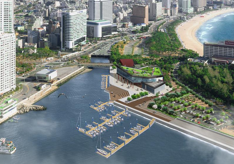 대상지는 해운대 백사장의 끝자락에 산지가 형성되어 있는 동백섬이다. 지형적 특성이 무척이나 강한 대지였기 때문에 건축이 동화되기란 쉽지 않은 곳이었다. 이 강한 지형의 기운에 대처하는 우리의 방법은 제2의 지형을 구축하는 것이었다. 마리나 시설의 이용자들이 사용하는 클럽하우스인 이 건물은 동백섬의 지형과 반대방향으로 또 다른 지형을 형성한다. 바닥이 곧 지붕이 되고 다시 지형이 되는 것이다. 백사장에서부터 이어오는 지형의 흐름이 건물을 타고 자연스럽게 바다로 향하는 매스의 대응은 지형과 대지가 어우러지며 어색하지 않은 기류를 형성하는 데 기여한다.