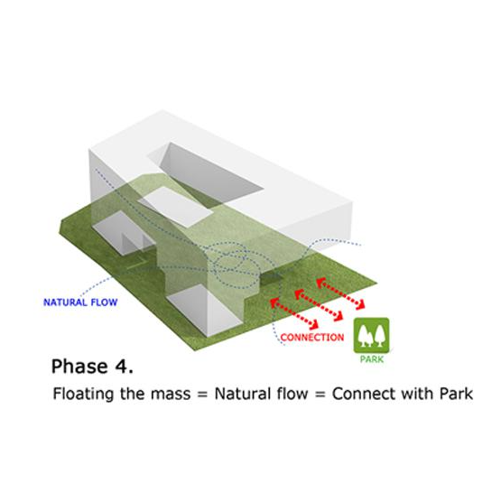 우리의 대안은 도서관의 영역성을 강조하기보다 정보와 반응하는 공원이고자 한다. 이는 이미 이 지역의 대부분 공간이 주거단지, 대형시설 그리고 공공시설등에 의해 큰 경계들로 채워져 있기 때문이다. 우리의 제안은 채워진 매스보다 비워내는 공간을 중심으로 구성된다. 기존의 open space와 공원의 기능을 존중하고 이와 반응하는 공공도서관을 제안한다. 상대적으로 부족한 이 지역의 openspace의 범위와 밀도는 지역의 문화, 소통의 활동을 저해하는 원인이 된다. 주어진 대지의 publice open space에 닫혀진 공공시설이 아닌 열려진 공공공간을 제안하고 다양한 활동을 유발 할 수 있는 문화 도서관을 만들고자 한다. 우리가 제안하는 open plan은 다변화 하는 커뮤니티 공간으로 변화하는 도서관의 기능에 가장 적극적으로 반응 한다. public open space와 공존하는 도서관의 open plan은 다양한 공공도서관의 프로그램에 유연하게 반응한다. 공공도서관은 보고 읽는 단편적 활동 뿐아니라 말하고 듣고 움직이는 다양한 형식의 정보활동이 발생하는 공간이어야 한다.