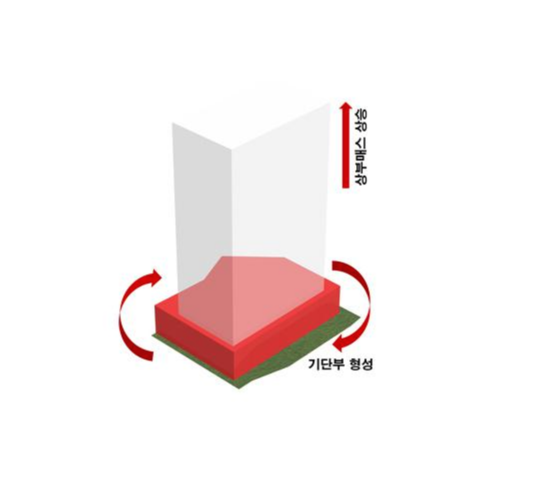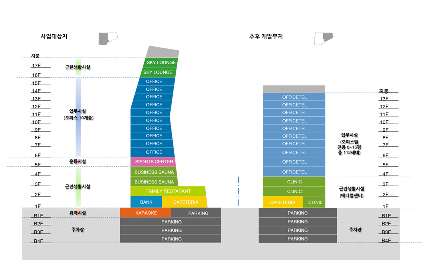 건축에는 건축의 철학과 미학적인 가치보다 우선시되어야 할 여러 가지 요소들이 있다. 건축을 구축하려는 건축주의 목적과 지어질 건축물을 이용할 사용자들이다. 만약 그러한 건축이 영리를 추구하는 기업의 가장 핵심시설이라 할 수 있는 사옥이라면 더욱 그러하다. 본 프로젝트는 한 기업의 브랜드와 가치, 그리고 이용자들과 같은 보다 실증적인 구성요소에 의한 Landmark 구축이 목적이었다. 연면적의 최대 확보라는 오피스가 가지는 본연의 목적을 기본 베이스로 하여 도시적 맥락과 기업 이미지에 기여하는 매스스터디, 가장 효율적인 기능을 구현할 수 있는 플랜, 브랜드 가치 상승과 독자성을 가질 수 있는 파사드 계획에 많은 노력과 시간이 투입되었다. 브랜드, 건축, 도시 그리고 인간이 어울려 만들어 내는 Landmark의 모습을 찾아내는 것이 본 프로젝트의 핵심 컨셉이다.