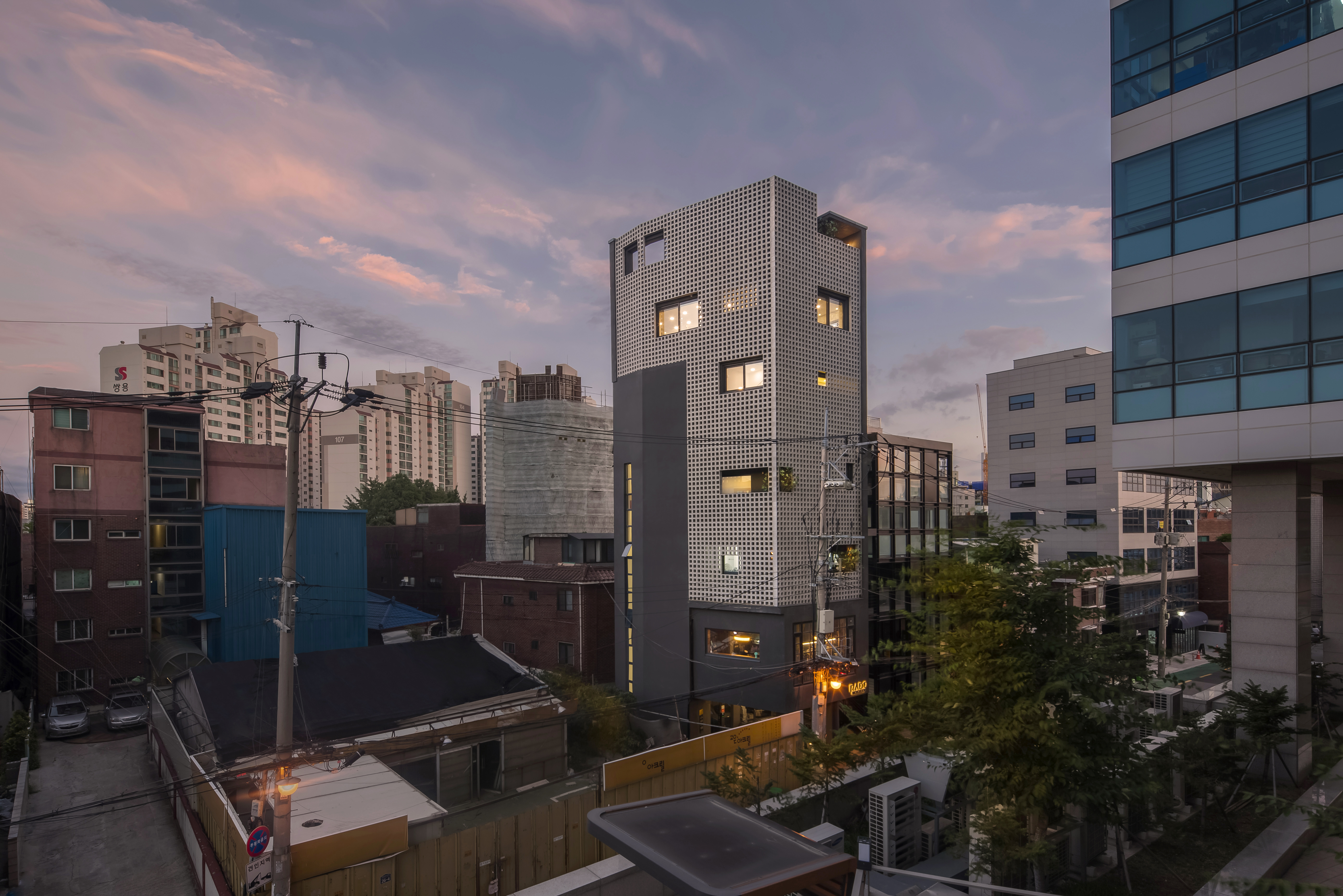 '속이 비치는‘이라는 의미를 가진 이 건물은 들쭉날쭉한 건물의 구조위에 4,806개의 시멘트 블럭으로 이루어진 반투명의 스킨을 덮고 있다. 가운데가 뚫려진 시멘트 블럭은 건물과 도시를 막아주는 역할을 하면서 동시에 이어주는 역할도 수행한다. 시스루 스킨은 낮에는 자연광을 투과해 건물 내부에 다양한 빛의 효과를 연출하고 밤에는 건물내부의 빛을 산란시켜 도시의 은은한 조명역할을 한다. 스킨의 사이사이에 뚫려진 조경공간들은 삭막해 질 수 있는 건물의 전체적인 이미지를 완화하는 장치이다. 개인의 가치와 욕구 그리고 도시의 경관적인 역할 사이에서 시스루 스킨은 개인적 공간과 도시적 공간을 은유적으로 이어주는 건축적인 장치가 된다.