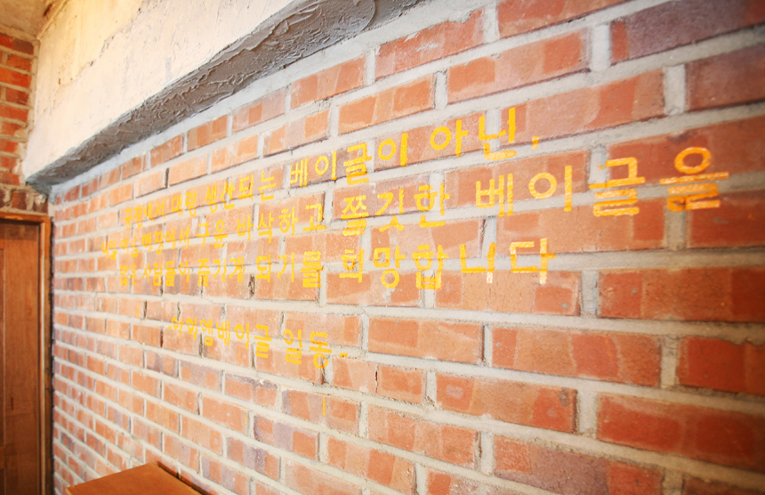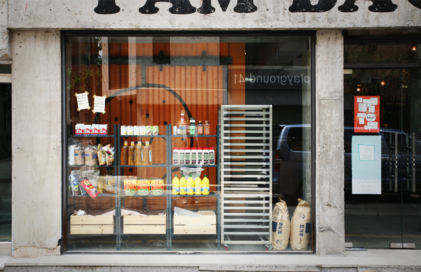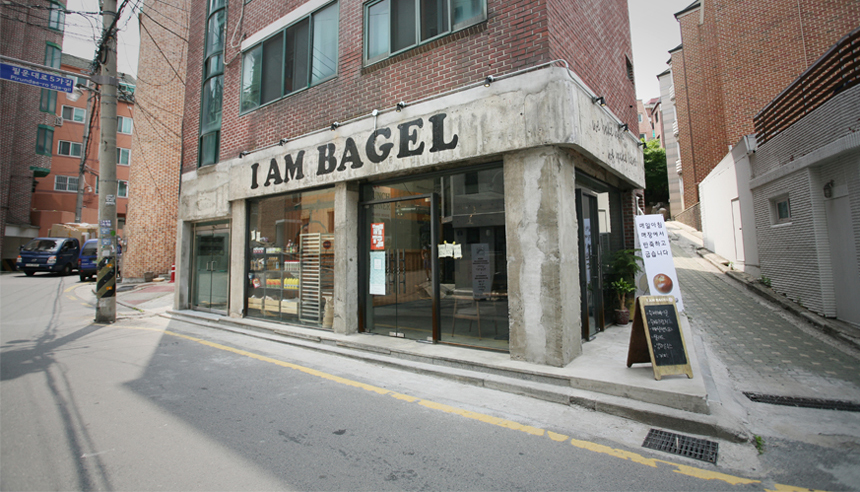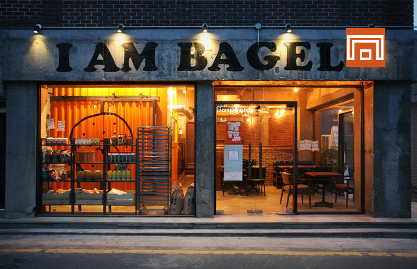 이 곳은 뉴욕 현지에서 맛볼 수 있는 베이글을 처음부터 끝까지 수제로만 제조하여 판매하는 곳이다. 정성과 시간을 들여 나오는 베이글 하나하나가 더욱 소중하게 느껴지게 할 수 있는 방법은 무엇인가? 이에 대한 우리의 해결 방법은 베이글을 제조하는 공장을 만드는 것이었다. 기존에 붙어있던 외벽의 마감을 떼어내고 건물의 순수 골조를 드러내어서 수제공장이라는 이미지 메이킹을 하였고 빵이 조제되는 주방을 컨테이너 박스로 제작하고 내외부의 경계가 되는 모든 벽면을 투명한 유리로 디자인 하여 빵을 먹으러 오는 이용객이 실내에 있지만 서촌의 한 거리에 앉아서 컨테이너 박스에서 파는 수제 베이글을 먹는 느낌을 받도록 하였다. 내부 객장에도 외벽에서 흔히 볼 수 있는 마감재들을 사용하여 내부와 외부의 경계를 모호하게 디자인하였다. 베이글을 생산해 내는 컨테이너의 강조, 가리기 보다는 적극적으로 드러내는 조리과정, 순수한 물성의 표현, 내외부 경계 흐리기 등이 이 프로젝트의 핵심 키워드가 된다.
