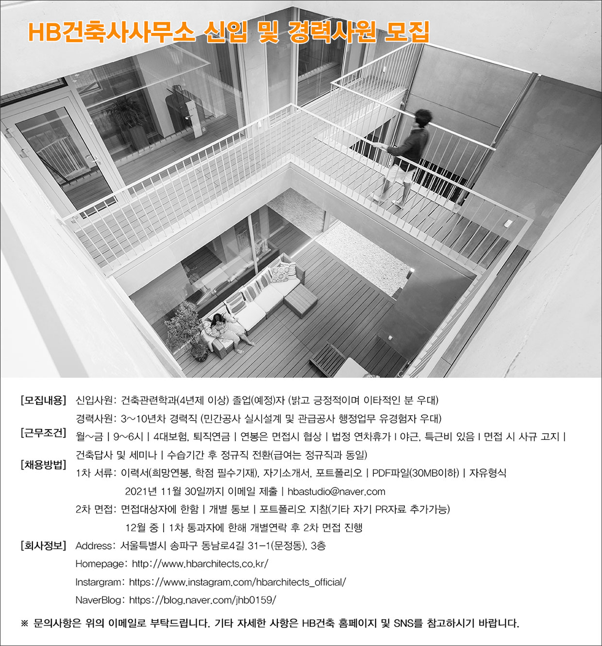 - 1차 서류심사 : 2021년 11월 30일까지 이메일 제출 (hbastudio@naver.com)
