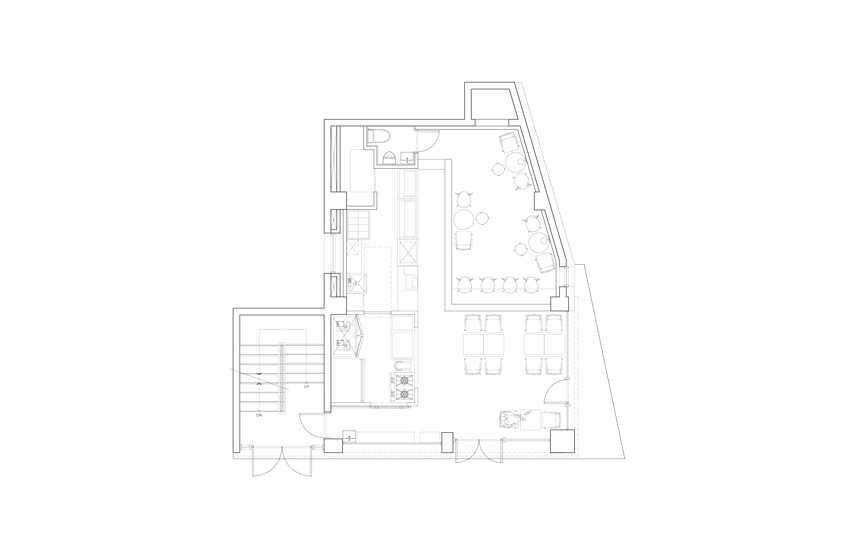 이 곳은 뉴욕 현지에서 맛볼 수 있는 베이글을 처음부터 끝까지 수제로만 제조하여 판매하는 곳이다. 정성과 시간을 들여 나오는 베이글 하나하나가 더욱 소중하게 느껴지게 할 수 있는 방법은 무엇인가? 이에 대한 우리의 해결 방법은 베이글을 제조하는 공장을 만드는 것이었다. 기존에 붙어있던 외벽의 마감을 떼어내고 건물의 순수 골조를 드러내어서 수제공장이라는 이미지 메이킹을 하였고 빵이 조제되는 주방을 컨테이너 박스로 제작하고 내외부의 경계가 되는 모든 벽면을 투명한 유리로 디자인 하여 빵을 먹으러 오는 이용객이 실내에 있지만 서촌의 한 거리에 앉아서 컨테이너 박스에서 파는 수제 베이글을 먹는 느낌을 받도록 하였다. 내부 객장에도 외벽에서 흔히 볼 수 있는 마감재들을 사용하여 내부와 외부의 경계를 모호하게 디자인하였다. 베이글을 생산해 내는 컨테이너의 강조, 가리기 보다는 적극적으로 드러내는 조리과정, 순수한 물성의 표현, 내외부 경계 흐리기 등이 이 프로젝트의 핵심 키워드가 된다.